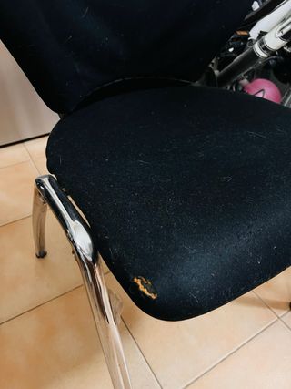 Conjunto de sillas versátiles, ideales tanto para comedor como para oficina. Su diseño moderno se adapta a diversos espacios. Hay una con un desperfecto como se muestra en la foto. - Tapicería de tela. - Estructura metálica.