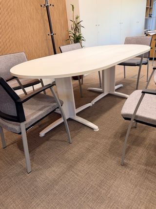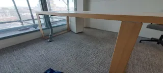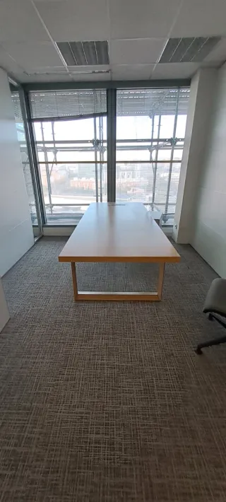 Mesa de oficina con un diseño moderno y funcional. Perfecta para espacios de trabajo. - Acabado en madera clara. - Estructura robusta. 7 de 2,40 x 96. 2 de 2,00 x 96.