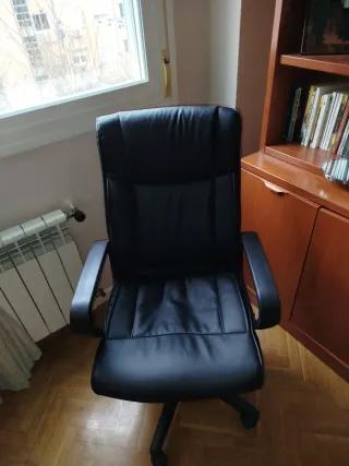 Silla de oficina con un diseño moderno y confortable. - Respaldo alto con soporte lumbar. - Reposabrazos acolchados. - Base giratoria con ruedas. Se recoge en Valdemoro
