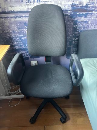 Se venden dos sillas de oficina, ideales para tu espacio de trabajo. Tienen manchas de uso, se puede poner funda 25 € cada una , si te llevas las dos 40€ - Diseño ergonómico. - Base con ruedas para fácil movilidad. - Respaldo y asiento cómodos.