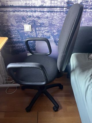 Silla de oficina cómoda y funcional. - Respaldo alto. - Brazos acolchados. - Base con ruedas para fácil movilidad.
