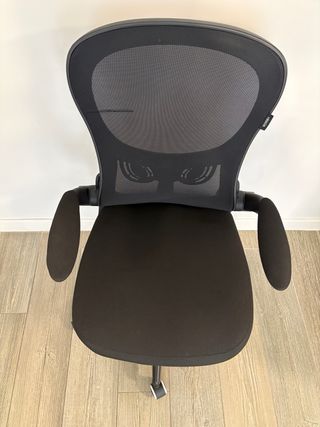 Silla de trabajo ergonómica con respaldo de malla. - Respaldo de malla transpirable. - Brazos abatibles. - Base con ruedas para fácil movilidad.