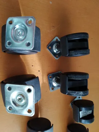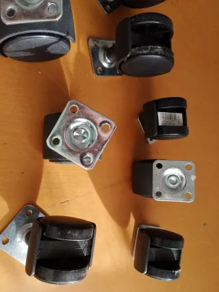Set de 4 ruedas grandes y 5 pequeñas,,para sillas de oficina o muebles.,,preguntar precio y disponibilidad - Ruedas giratorias de plástico y metal. - Base cuadrada para atornillar.
