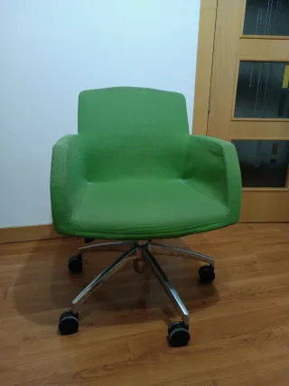 Silla de oficina verde con base plateada
