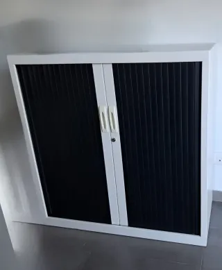 Conjunto de 2 archivadores metálicoscon puertas correderas y dos baldas interiores. - Diseño moderno en blanco y negro. - Material resistente para uso diario.