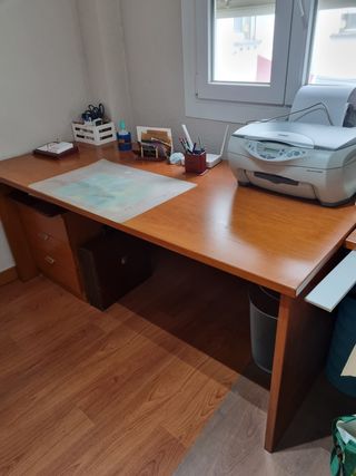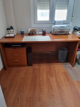 Vendo mesa de estudio u oficina de madera, nueva, casi no se ha usado, incluye cajonera con 3 cajones. 100€ precio negociable
