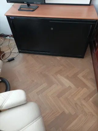 Recoger en los Arroyos, cerca de Collado Villalba Mueble archivador con un diseño moderno, ideal para tu espacio de trabajo. - Combinación de acabados en madera y negro. - Tiradores integrados para fácil acceso. - Cerradura central para mayor seguridad.