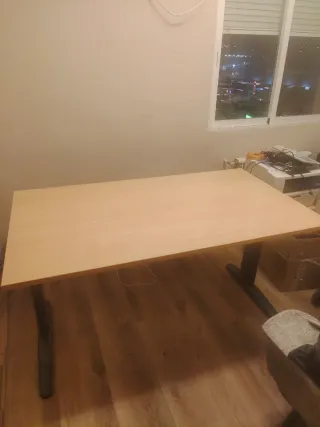 Mesa de oficina con un diseño moderno y funcional. La he utilizado en casa para estudio de oposiciones. Tiene algún arañazo apenas visible. Madera buena .Pesa,por eso no hago envío. Mesa de fácil montaje