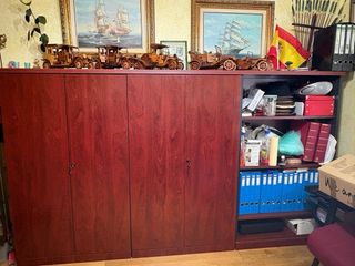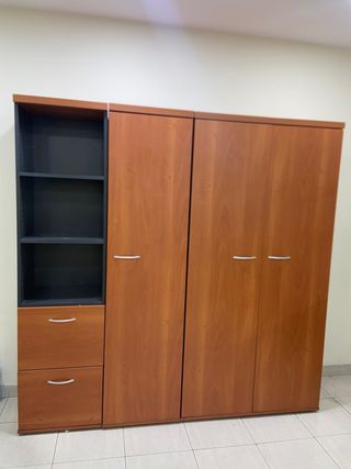 Se venden muebles de oficina en perfecto estado: * 1 mueble 1,00 ancho/2,00 alto/0,44 cms fondo 2 puertas y 4 baldas interiores.Coste 70€ *1 mueble 0,50 ancho/2,00 alto/0,44 cms fondo con 1 puerta y 4 baldas interiores. Coste 40€ *1 mueble 0,50 ancho/2,00 alto/0,44 cms fondo con 2 cajones de carpetas y 2 baldas abiertas. Coste 40€ *1 mueble 1,5 ancho/0,85 alto/0,44 fondo de 3 puertas y balda interior. Coste 60€