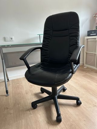 Cómoda silla de oficina giratoria. Se encuentra en perfecto estado. - Estructura resistente de metal. - Acolchado de cuero sintético.