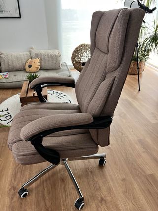 Silla de oficina con un diseño moderno y acolchado para mayor comodidad. - Tapicería de tela. - Base con ruedas para fácil movilidad. - Respaldo alto. - Reclinable - Masaje brivatorio La vendo por falta de uso. Precio nueva 166€ Hay que recogerla en Mora d’Ebre