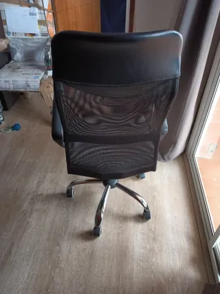 Silla de oficina, muy cómoda y con asiento y respaldo en buen estado. La regulación de altura ESTÁ ROTA, por lo que al sentarte al minuto baja hasta su mínima altura. El problema es del pistón, que ya no tiene presión. En teoría puede reemplazarse. El respaldo es muy transpirable, ideal para verano. Tiene un buen apoyo lumbar, aunque no es ajustable. Aparte también puede liberarse el respaldo para hacerlo reclinable. Solo venta en persona.