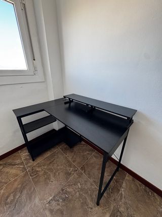 Se trata de una mesa de oficina en forma de L con dimensiones de 180cm de largo y 120cm de ancho tal como se muestra en las imagenes, la mesa tiene UN MES de uso (a fecha de 29/01/2026), la pongo a la venta porqué el período de devolución de 30 días ha caducado. He puesto las fotos de stock de la mesa porqué es tal cual a ella, si se necesita más fotos no hay problema en pasarlas