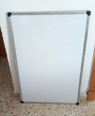 Pizarra blanca de Amazon Basics en perfecto estado. Ideal para oficina o estudio. Yo la usé para oposiciones y me vino de maravilla. - Medidas aproximadas: 60cm x 90cm - Marco de metal resistente - Superficie de escritura lisa