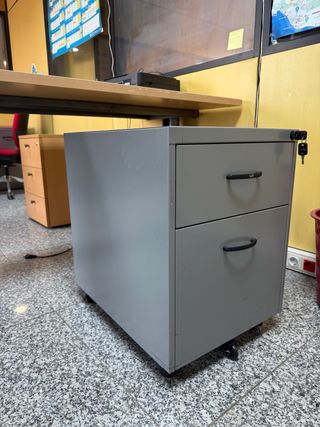 Cajonera para despacho u oficina en perfecto estado, con 4 cajones, cerradura con llave (incluida) y ruedas, lo que permite moverla fácilmente y guardarla bajo el escritorio. Medidas: 📏 41 cm ancho x 57 cm fondo x 58 cm alto Estructura en color gris metalizado y tapa superior de madera clara, diseño moderno y profesional. Ideal para oficina, consulta, despacho o estudio en casa. Muy práctica para organizar documentos y material de trabajo manteniendo la seguridad. 💶 Precio: 40€ 🚛 Transporte a cargo del comprador 📍Ubicación: San Fernando (Gran Canaria)