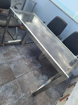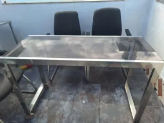 Mesa de oficina con un diseño moderno y elegante. - Superficie de cristal. - Estructura de metal. Tengo 3 mesas
