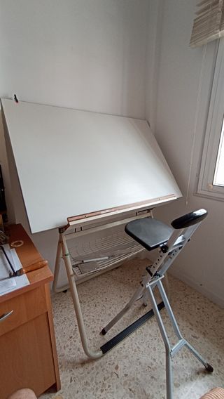 Mesa de dibujo técnico con superficie inclinable. Ideal para artistas y diseñadores. - Estructura robusta de metal. - Superficie de trabajo amplia. - Ajuste de inclinación.