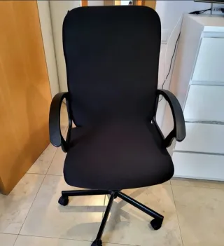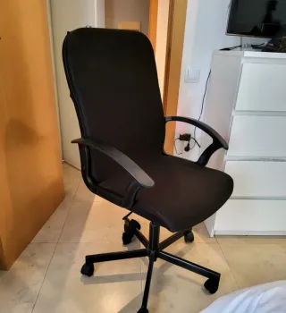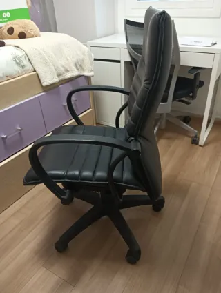 Silla de oficina modelo Ikea, con un diseño moderno y funcional. - Tapizado en polipiel. - Base con ruedas para fácil movilidad. - Respaldo ergonómico.