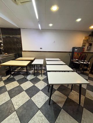 Vendo varias mesas de diferentes tamaños, estilos y materiales, procedentes de uso en bar y hogar: -2 mesas amarillas de 1,10 x 70 cm → 10€/unidad -2 mesas blancas con borde madera de 1,23 x 82 cm → 10€/unidad -5 mesas blancas de 95 x 55 cm → 10€/unidad -1 mesa cuadrada marrón con patas negras de 60 cm → 10€/unidad -1 mesa cuadrada gris de 60 cm → 10€/unidad Todas presentan marcas normales de uso, algunas con desgaste o rayaduras superficiales, pero son totalmente funcionales