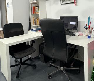 Mesa escritorio blanca en buen estado. Ideal para espacios reducidos. - Superficie amplia y limpia. - Patas metálicas resistentes. - Diseño moderno y elegante. Estupenda mesa Blanca madera. para estudio, escritorio... Lado izquierdo en V madera, lado derecho doble para aluminio. Sin utilizar al adquirir nuestra vivienda. Vendemos por no querer y vaciado de vivienda. Lista para recoger en Alcasser