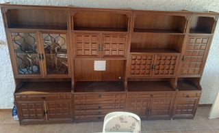 Oportunidad. Vendo 4 módulos de mueble + 1 rinconera. Muebles antiguos pero sólidos y en buen estado general. Ideales para quien necesite mucho almacenaje a bajo precio. Incluyen 3 fundas laterales. Medidas: •Alto: 2,14 m • Fondo: 47 cm • Ancho: 91,5 cm con funda / 90 cm sin funda • Rinconera: 64 cm ancho x 46 cm fondo ×2,14 m alto Un módulo tiene restos leves de vino tinto y bisagras inferiores rotas. Fácil de arreglar. Se venden juntos o por separado. Precio conjunto:135€ Módulos: 30€ Rinconera:20€ Módulo con detalle, del vino y puertas sueltas:25€ Recogida en domicilio. Precio negociable
