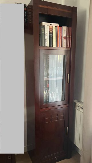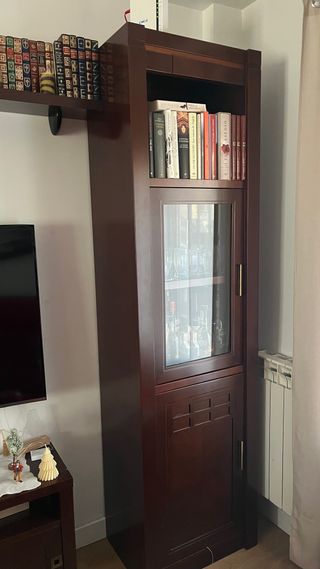 Liquidación de muebles por venta de casa. Ver mis otros anuncios. Mueble de salón de estilo clásico con vitrina. Se vende vacío. - Diseño elegante en madera oscura. - Puertas de cristal para exhibir objetos. Sólo recogida, segundo piso, tienen que desmontar los compradores. Zona de el Corte Inglés. Precio negociable.