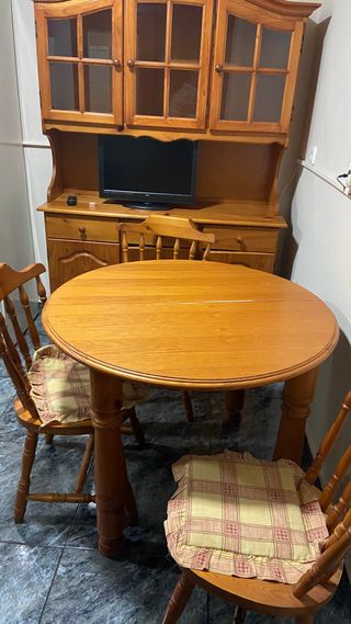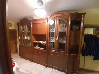 Se venden muebles de vivienda completa en buen estado general, de estilo clásico y madera maciza. Incluye: Mesa de comedor con 6 sillas Mueble de salón grande con vitrinas y almacenaje Aparador / vitrina auxiliar Dormitorio completo: cama, armario grande, cómoda, mesillas y espejo Muebles auxiliares y almacenaje adicional Muebles robustos, bien conservados y funcionales, ideales para amueblar una vivienda entera o para piezas sueltas. Posibilidad de vender el conjunto completo o por separado. Precio a hablar.