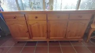 Si necesitáis medidas de algún mueble en particular habladme. Conjunto de muebles de salón comedor en madera. Incluye mueble bajo con cajones y puertas, y módulo superior con vitrinas. - Acabado en madera. - Diseño clásico. - Amplio espacio de almacenamiento.