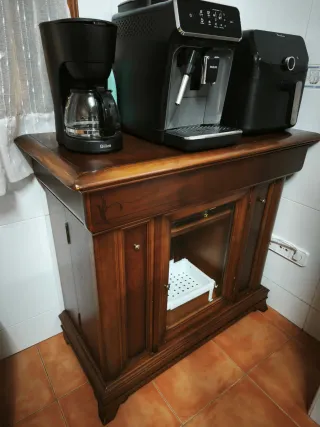 Mueble auxiliar de madera con un diseño robusto, clásico y elegante. - Acabado en tono marrón oscuro. - Ideal para añadir espacio de almacenamiento y estilo a tu hogar. - zona Galicia _ Caldas de Reis