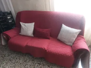 Sofá de cuatro plazas en buen estado. Ideal para tu salón. - Diseño clásico y elegante. - Tapizado de tela resistente. - Perfecto para relajarse y disfrutar. se divide en dos módulos por la mitad