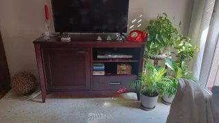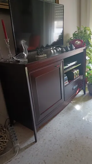 Mueble de estilo inglés, ideal para colocar tu televisor. Su diseño clásico aporta elegancia a cualquier salón. - Acabado en madera oscura. - Puerta con detalle frontal. - Cajón con tirador metálico. - Estante interior para dispositivos. INTERESADOS LLAMAR AL 655341037 RAMON