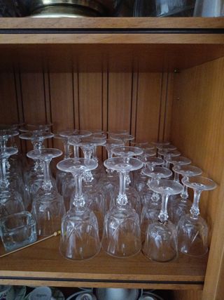 Elegante vitrina de madera con puertas de cristal, perfecta para exhibir tu cristalería (cristal de bohemia) - Diseño clásico y refinado. - Estantes de cristal para una visualización óptima. - Tiradores dorados. - Base con cajones decorados.