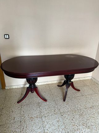 Mesa de salón clásica de madera color caoba