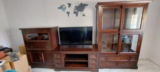Mueble de salón con un diseño clásico y elegante. Se pides desmontar pero se vende todo junto , precio negociable - Fabricado en madera. - Color marrón. - Cuenta con varios cajones y compartimentos. - Puertas laterales con lamas.