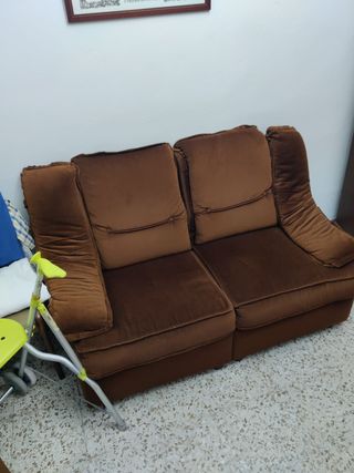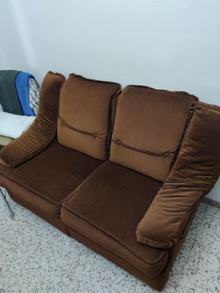 Sofá marrón de dos plazas. Está en muy buen estado, ideal para cualquier hogar. La tela no estoy seguro si es microfibra o velvet pero no sé pone reblanquia ni nada, es muy buena. - Diseño clásico y elegante. - Tapicería suave y confortable. - Perfecto para añadir un toque de estilo a tu salón.