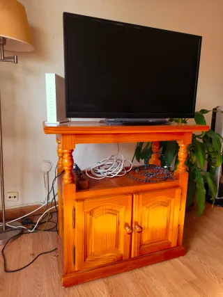 Mueble de televisión de madera noble de alta calidad con un diseño clásico Tiene dos baldas y un cajón. Medidas largo 75 cm, fondo 45 cm y alto 68 cm. Dispone de ruedas. No se hacen envíos, para recoger. - Estructura robusta. - Amplio espacio de almacenamiento.