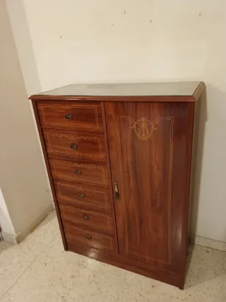 Mueble de madera con cajones y puerta