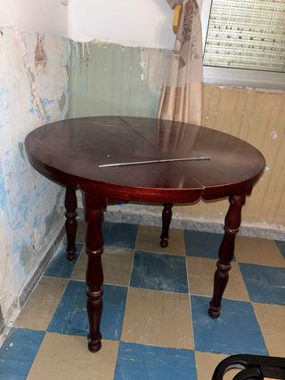 Mesa redonda de madera oscura