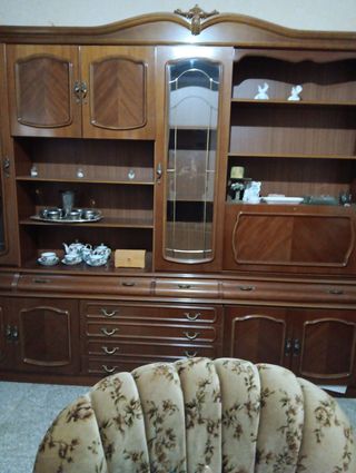 Vendo Salón clásico completo, compuesto por aparador con espejo, vitrina, mesa, 4 sillas y 2 sillones. Todo está en perfecto estado, ya que no se ha usado nunca. Se vende todo junto. Cualquier duda, pregunta sin compromiso.