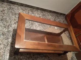 Elegante mesa de centro con un diseño clásico y funcional. Perfecta para dar un toque de estilo a tu salón. - Estructura de madera robusta. - Encimera de cristal transparente.