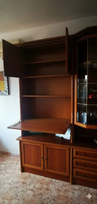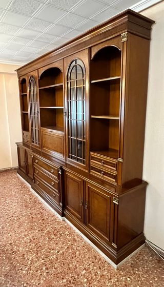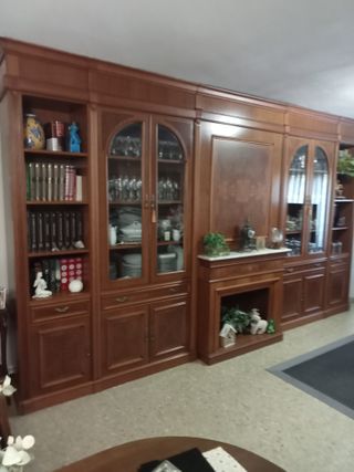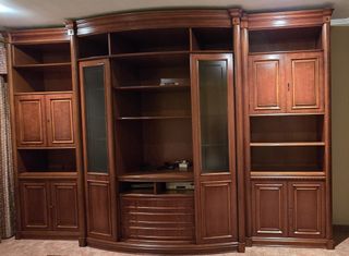 À recoger en Moncófar Conjunto de muebles de madera con diseño clásico. - Estructura de madera. - Mueble con vitrina y cajones. - Estanterías.