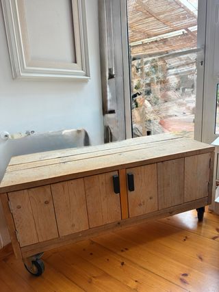 Vendo un mueble rústico con ruedas. Medidas: Ancho 78 cm, Alto 90cm, Fondo 39cm. En muy buen estado.