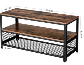 Mueble de TV con un diseño moderno y robusto, perfecto para tu salón. - Estructura de metal resistente. - Tableros de madera con acabado rústico. - Tres niveles de almacenamiento. - Estilo industrial y moderno. -Medidas: 100x40x52cm (ver foto con medidas) -Altura de patas regulable Se puede usar como mueble bajo para otras estancias como habitaciones también. Se vende ya montado. No se hacen envíos. Precio original: 80€