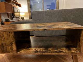 Mesa de centro con un diseño industrial que combina simil madera y metal. Aporta un toque moderno y rústico a tu salón. Marca y modelo: Vasagle LCT61X, comprada en Amazon. - Estructura robusta de metal. - Tablero con acabado imitación madera. - Estante inferior de rejilla metálica. - Excelente calidad Se retira por La font d’en Fargues. Cerca del parque del Guinardó, Barcelona. - Medidas: 106,2 cm (largo) x 60,2 cm (ancho) x 45 cm (alto). - Estructura metálica resistente. - Estante inferior de rejilla metálica.