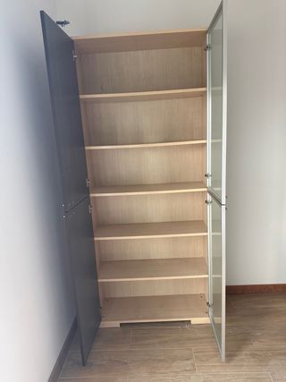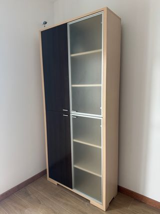 Armario salón madera y cristal