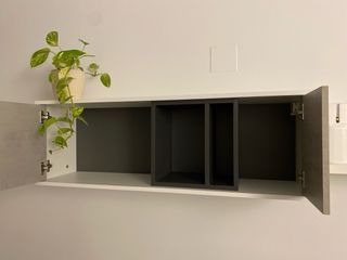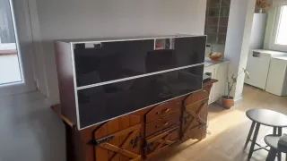 Conjunto de dos piezas para el salón. - Mueble superior con 2 puertas - Mueble inferior con cajones y compartimentos abiertos. Lo vendo porque he comprado nuevos muebles y no hacen juego. Comprados hace 1 año, están nuevos y sin rasguños.