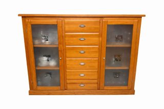 Mueble de salón fabricado en pino inglés macizo. Cuenta con puertas de cristal y madera, ideal para almacenar y exhibir. Muy bien conservado - Estructura de madera maciza. - Puertas de cristal y madera. - Amplio espacio de almacenamiento.