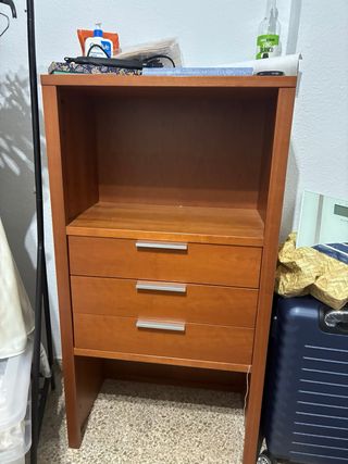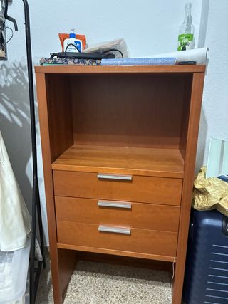 Mueble de madera de roble con tres cajones. El mueble pesaba bastante hay que cogerlo entre dos personas. Hay que venir a buscarlo a calle Sócrates. - Diseño moderno y funcional. - Tiradores metálicos plateados. - Amplio espacio de almacenamiento.