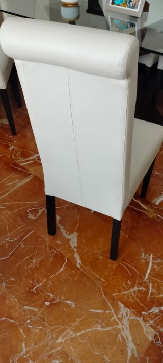 Conjunto de 4 sillas de salón con un diseño elegante, 10€ cada una - Estructura de madera. - Asiento tapizado en tela.
