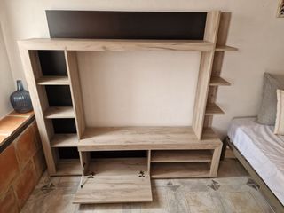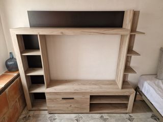 Mueble de salón con acabado en color roble. Se encuentra en perfecto estado. Perfecto estado. Medidas 173x158x33 - Diseño moderno y funcional. - Amplio espacio de almacenamiento. - Estructura de madera resistente.